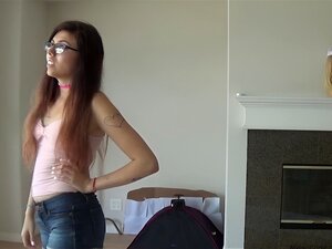Una morena quiere ganar dinero fácil transmitiendo desnuda en vivo. Se masturba para atraer vistas. Un espectador le pide que chupe una polla y así ella se la chupa a su hermanastro. Para obtener más, decide follárselo y así el tipo se folla su coño rasur
